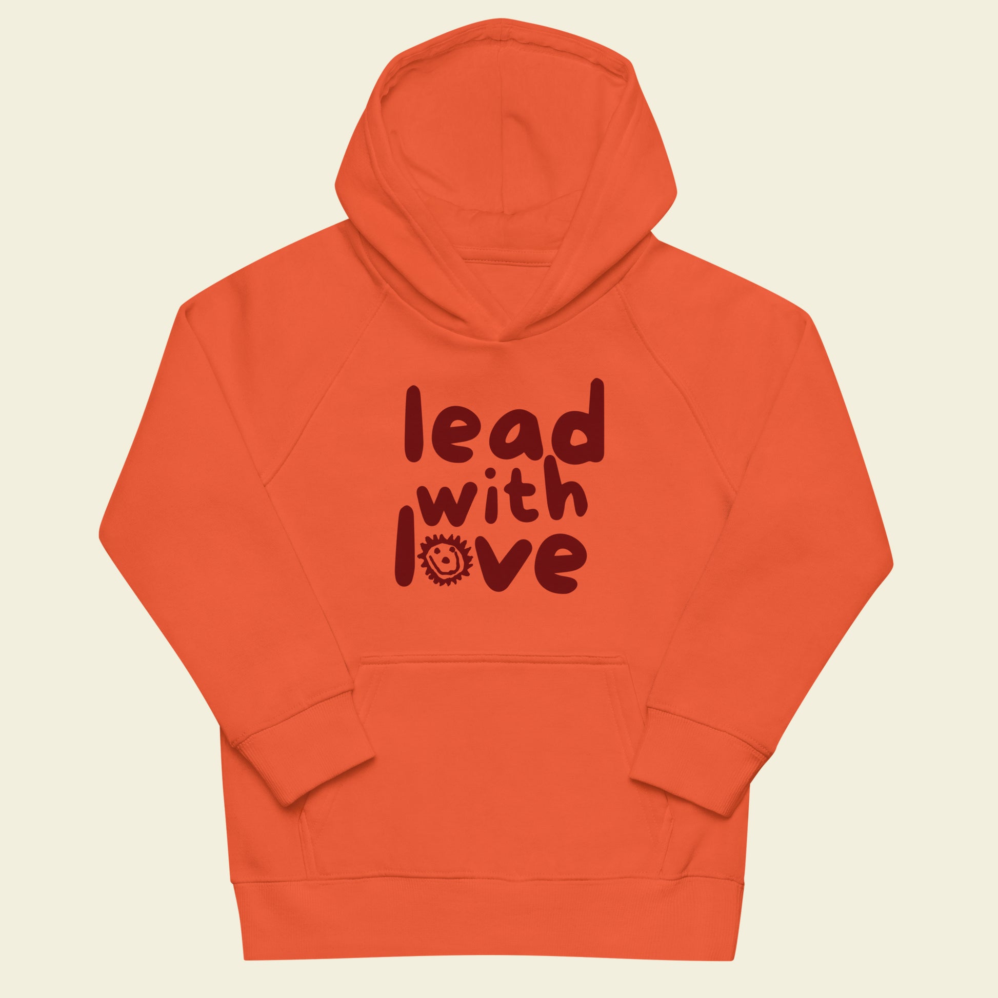 Lead With Love Orange Hoodie (100% cotton, raglan sleeves)